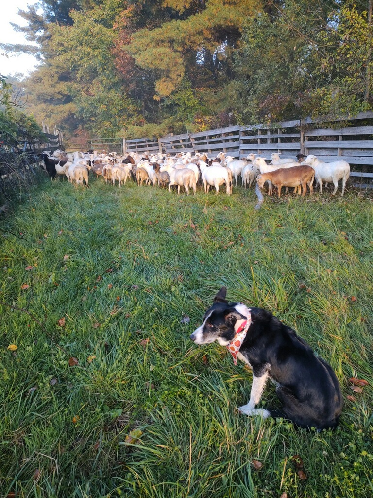 Samuel and Pip, our border collies, help move sheep safely.